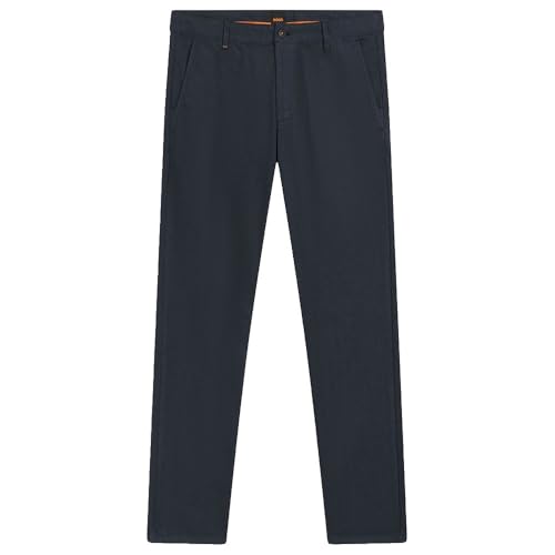BOSS Men's Slim Fit Stretch Cotton Satin Chino Trousers, 404 Dark Blue, 38W x 32L
