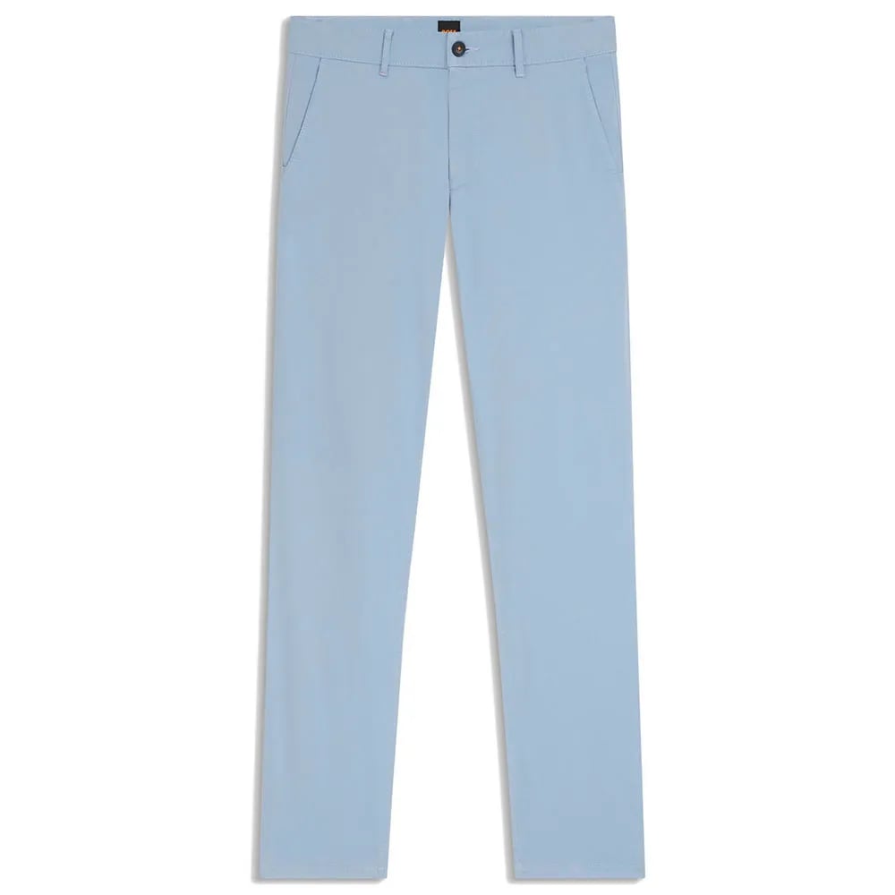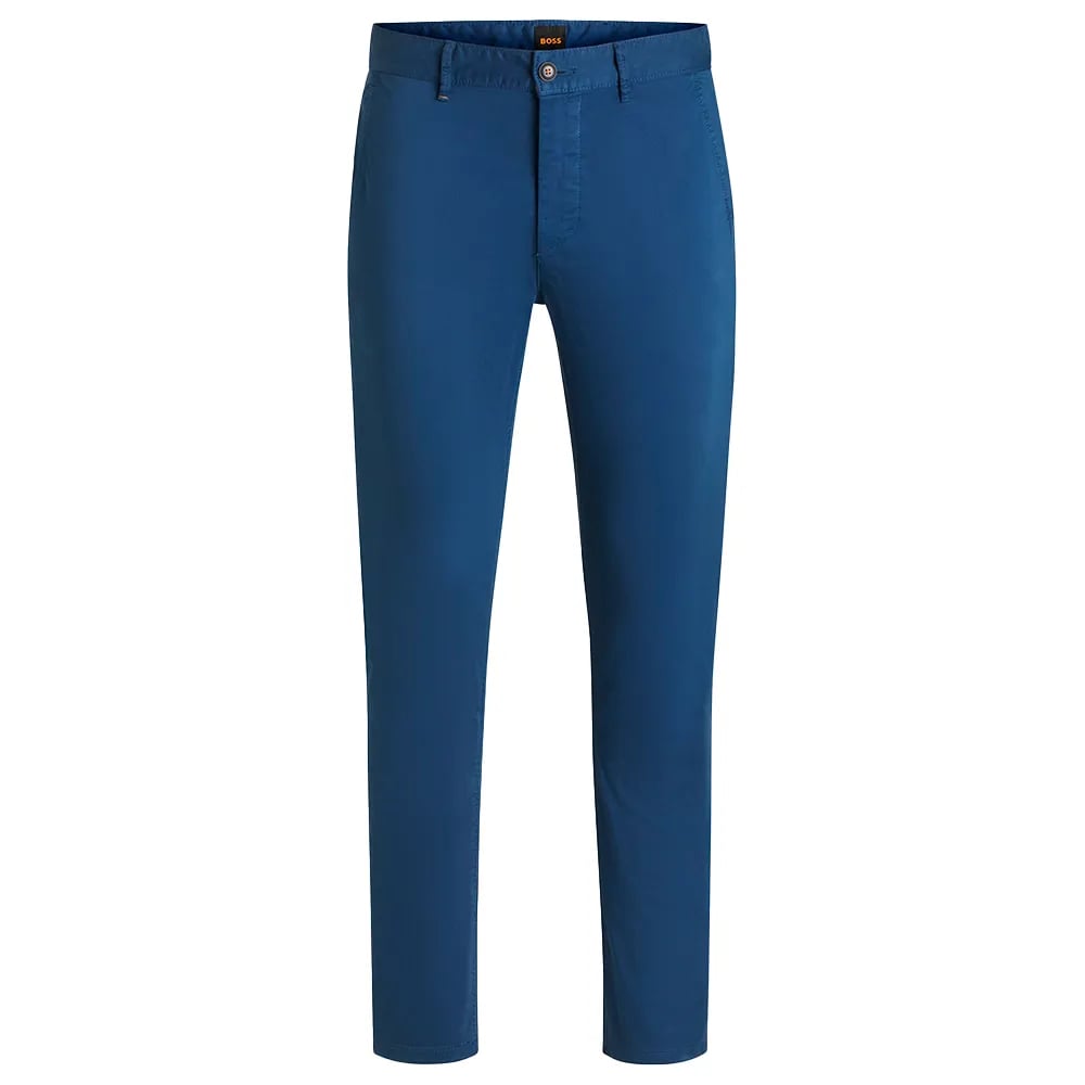 BOSS Men's Slim Fit Stretch Cotton Satin Chino Trousers, Open Blue, 34W x 30L