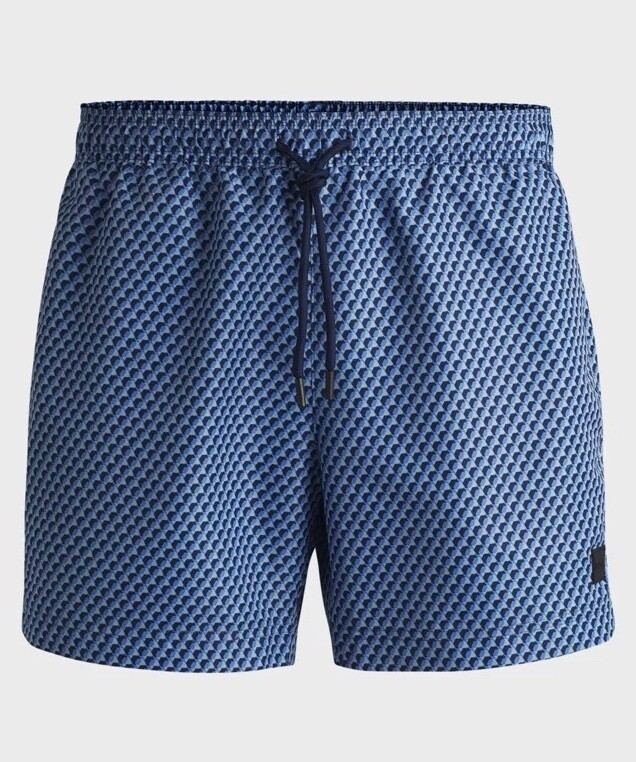 Boss Mens Piranha Swim Shorts Open Blue Cotton - Size X-Large