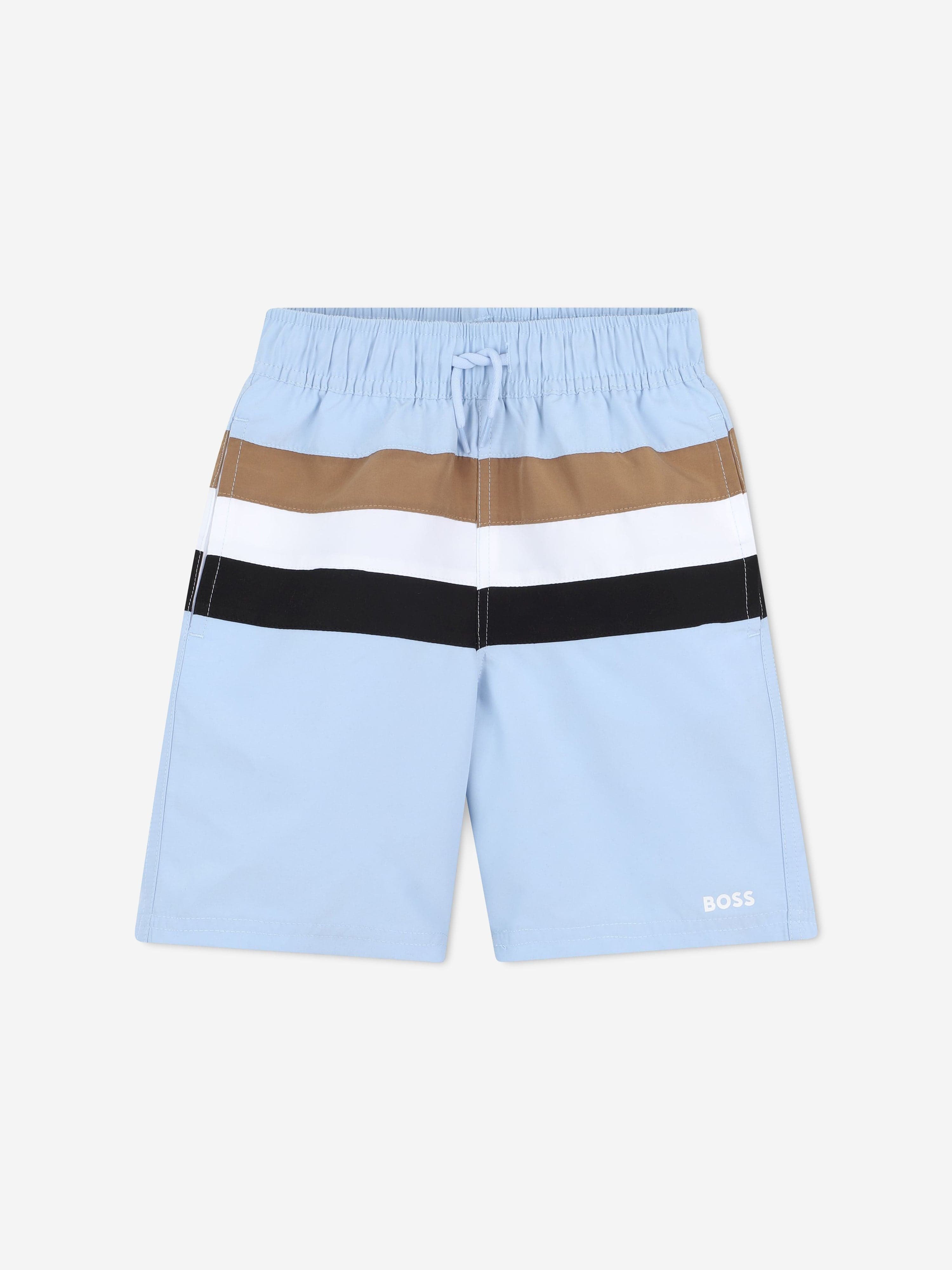 Boss Boys Striped Swim Shorts in Blue - Size 10Y
