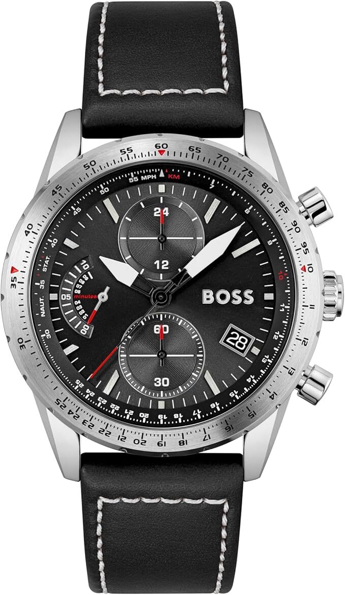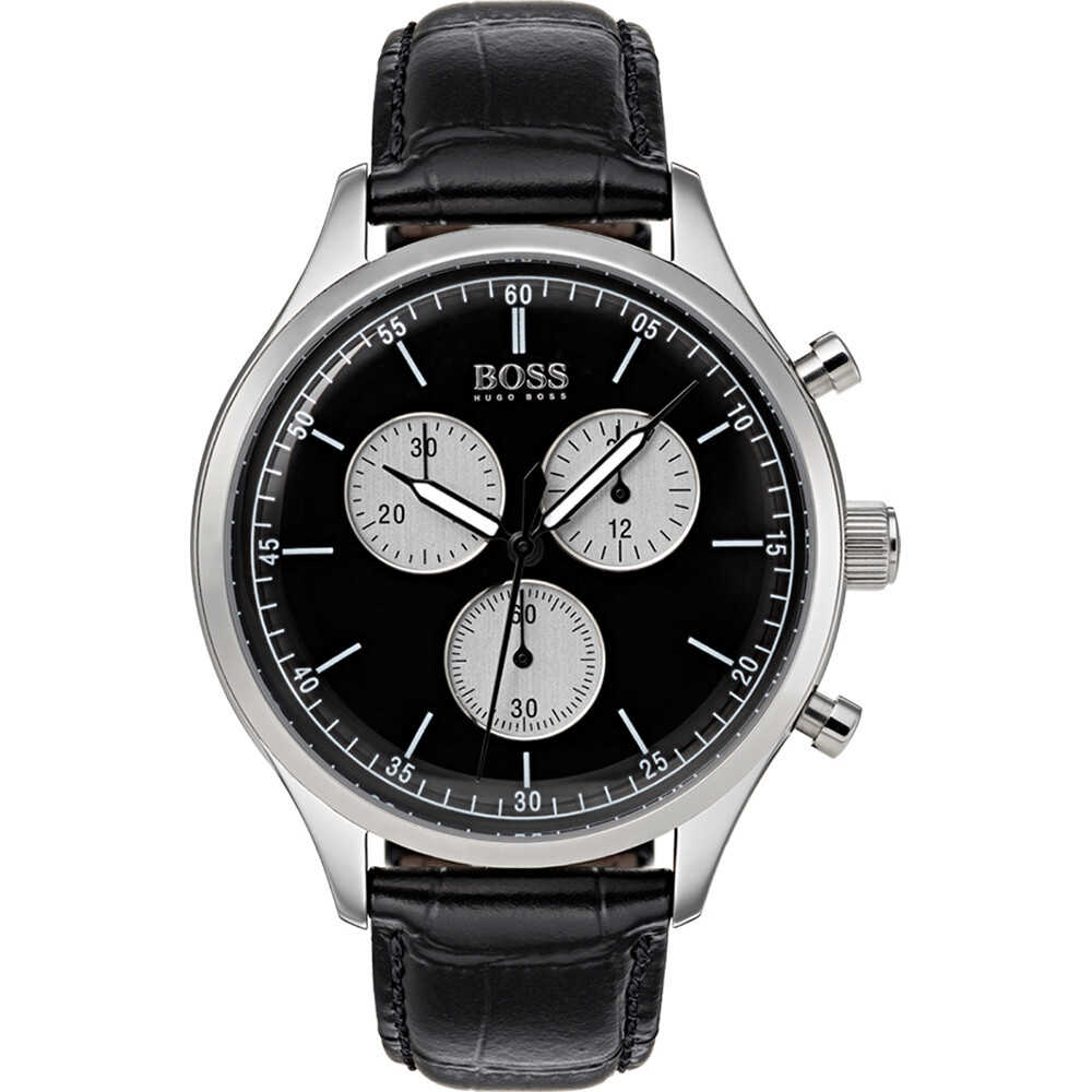 BOSS Chronograph Quartz Watch for Men with Black Leather Strap