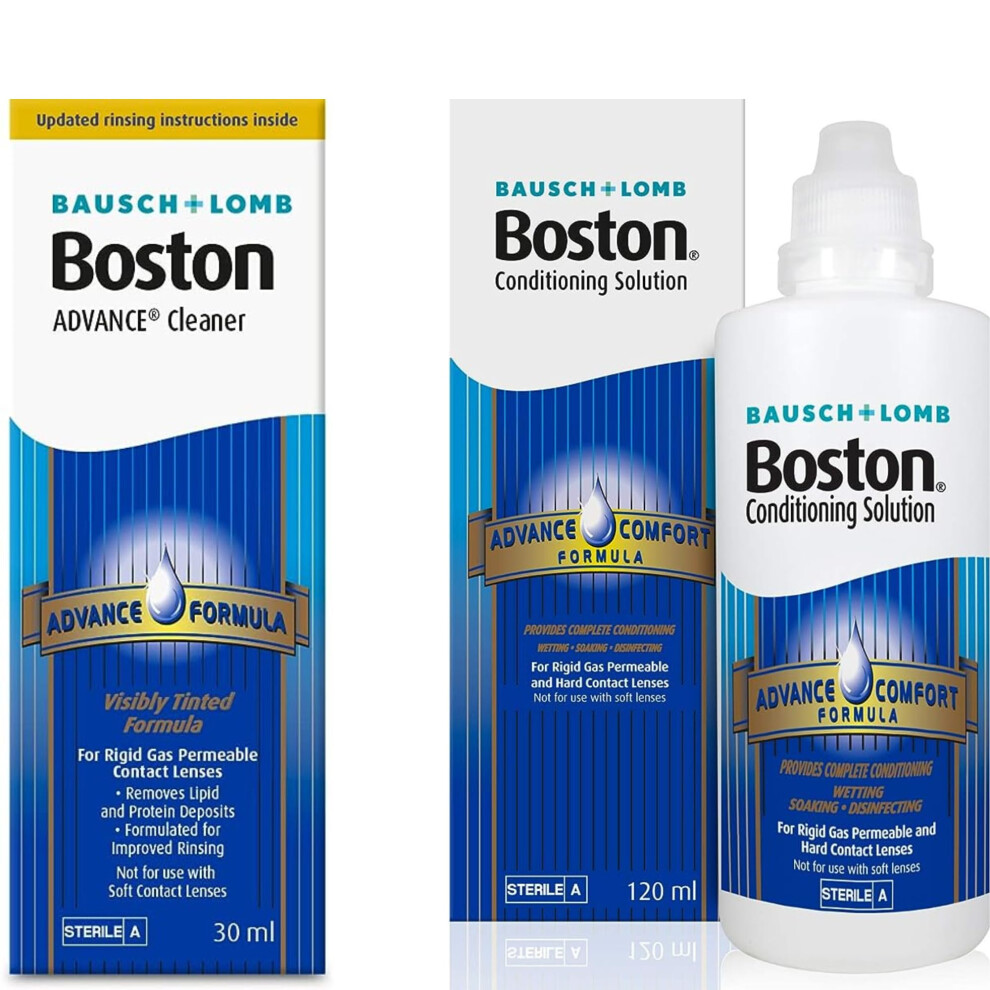 Boston Advance Cleaner Conditioning Solutions Multipack - 3X 30ml Cleaner, 3X 120ml Conditioning Solution, Contact Lens Solution for Rigid Gas Permeable & Hard Contact Lenses, 1x Lens Case Included