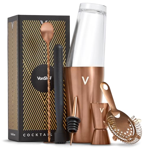 VonShef Cocktail Shaker Set, Copper 6pc Set with 550ml Boston Cocktail Shaker, Professional Bartender Kit for Home Bar, Including Strainer, Muddler, Jigger & Other Bar Accessories, Gift Box Included
