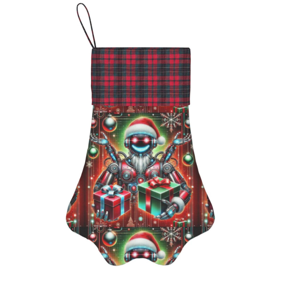(Yuletide Automaton Santa Bot's Festive Delivery=6897) Paw Christmas Stockings Buffalo Tartan Plaid for Cats Dogs Pet Hanging Xmas Tree Decorations