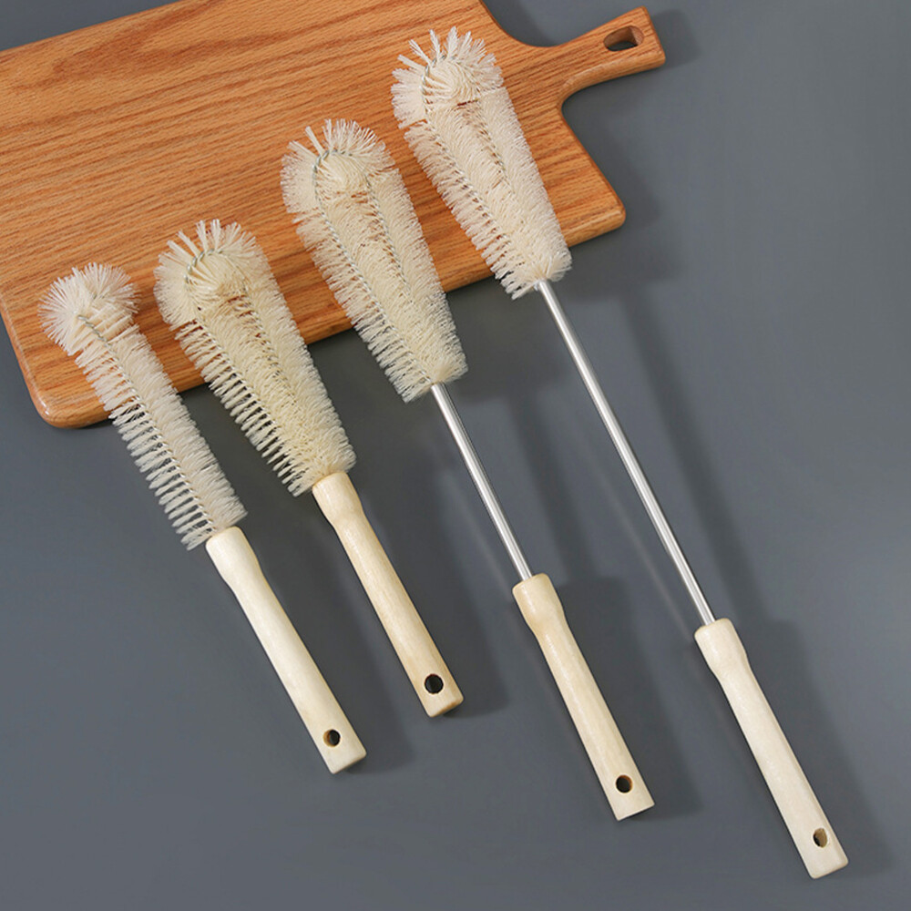 4pcs Long Handle Bottle Cleaning Brushes Nylon Wood Handle Cup Scrubber Set