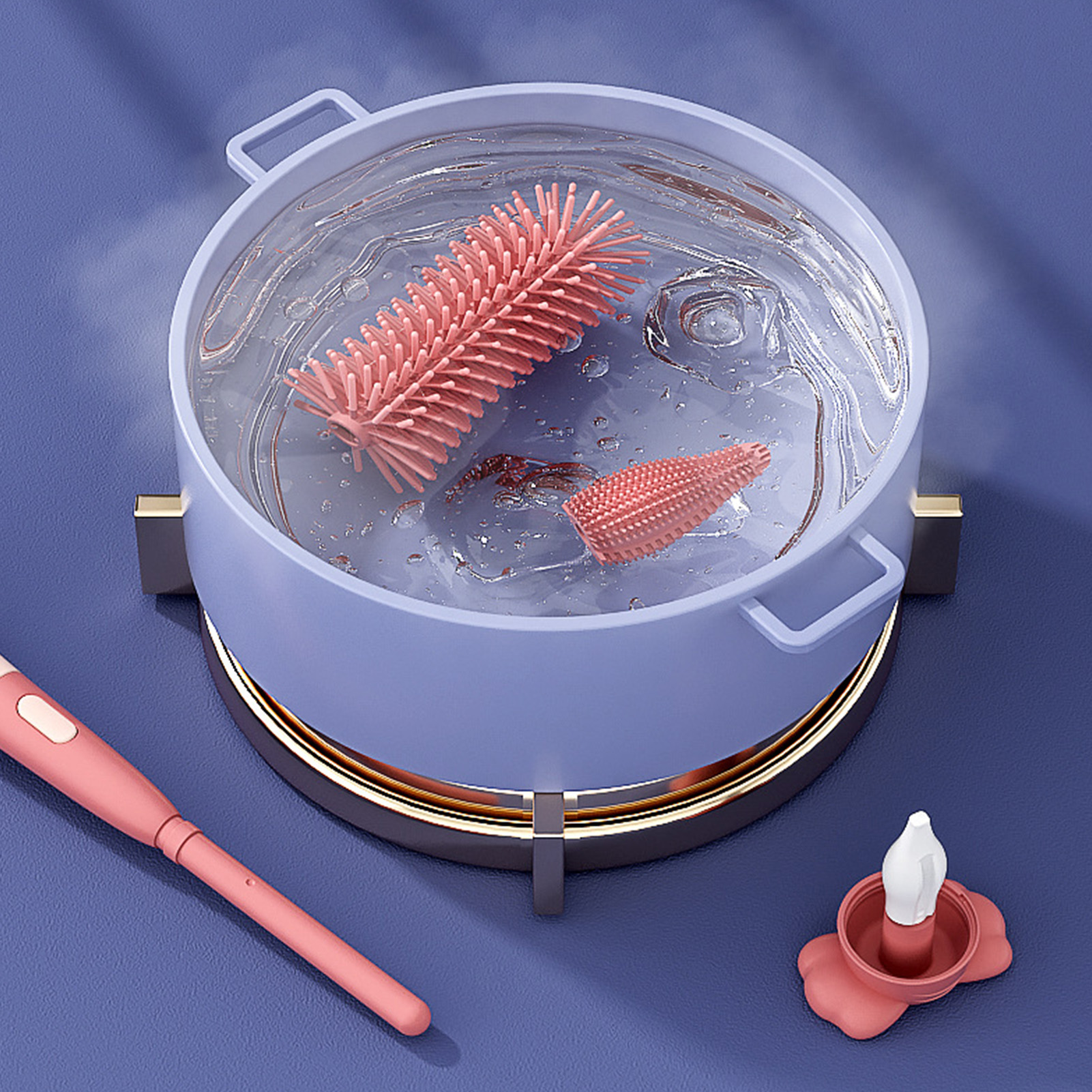 (Blue)Bottle Cleaning Brush IP65 Waterproof Electric 2 Speeds Rotating Sili