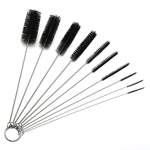 10 x Nylon Bottle Tube Nozzle Cleaning Brush, Pipe Cleaner, Straw Cleaning Brush for Drinking Straws, Glasses, Keyboards, Jewellery Cleaning Black Durable Design