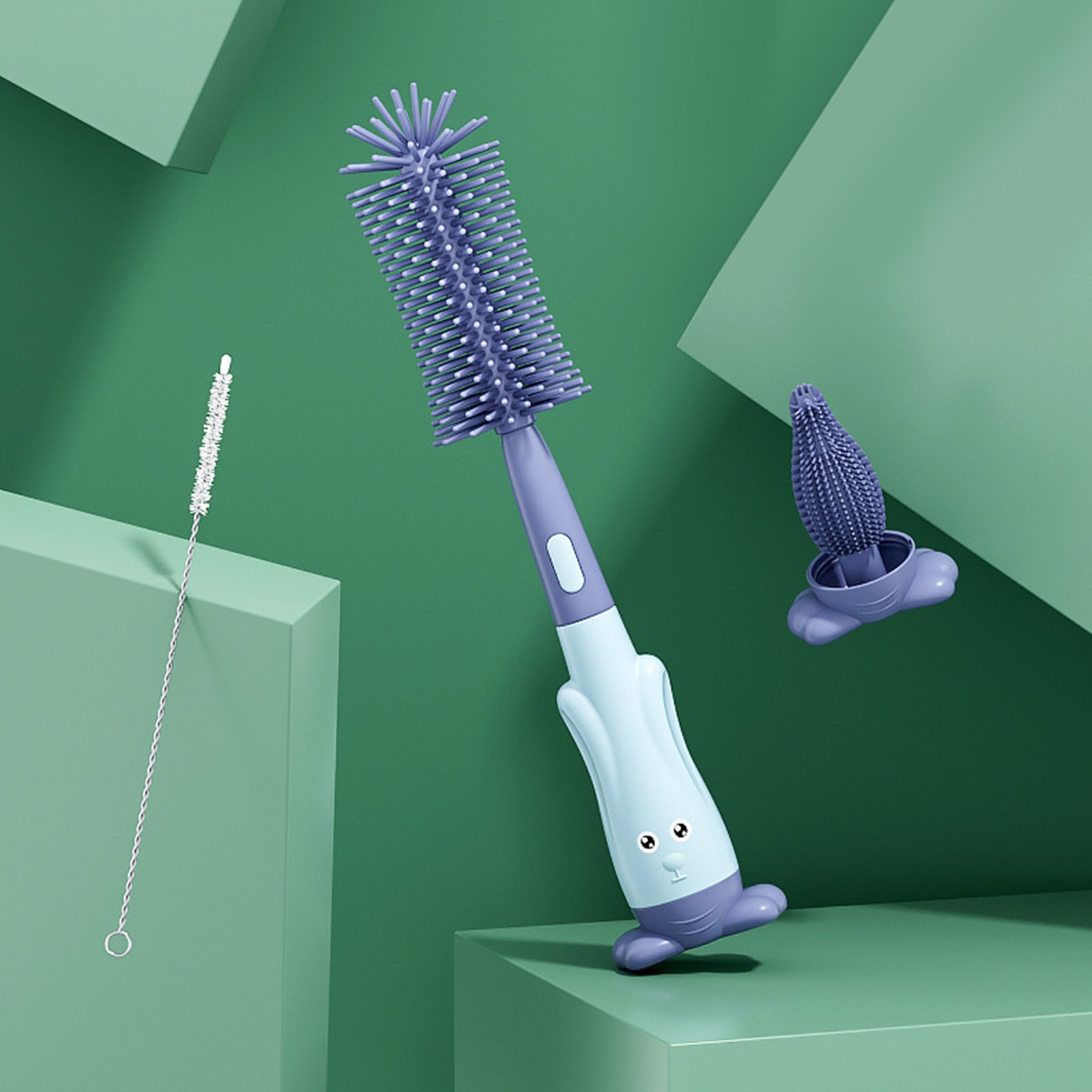 petjoyful 3 in 1 Bottle Brush Cleaner Silicone Soft Wear Proof Durable Bottle Cleaning Brush Set for Household (Green)