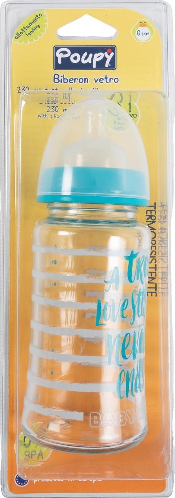 Poupy Baby Bottle In Pure Natural Glass For Newborns 230 Ml POUPY