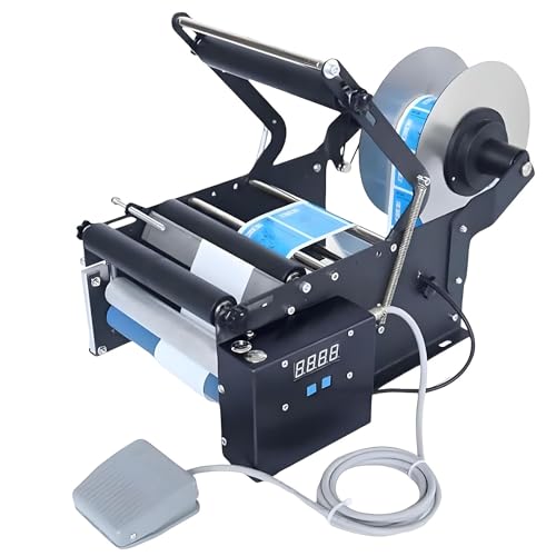 WUHGI Round Bottle Labeling Machine,Sticker Label Printer Packing Machine with Foot Pedal,Electric Bottle Labeler for Round Glass Plastic Metal Bottle,Label Maker