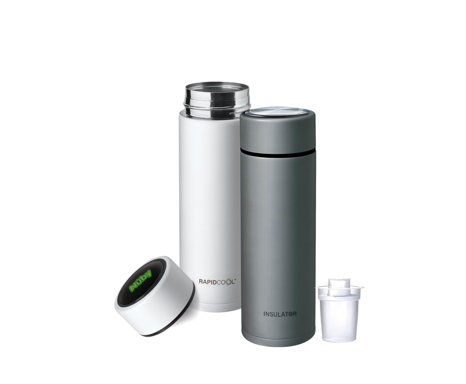 Nuby RapidCool Portable Baby Bottle Maker Twin Pack - Formula Feed in 2 Minutes | Ideal for Travel Bottles and Night Feeds | Includes Milk Powder Dispenser, Digital Lid & Flask (White)