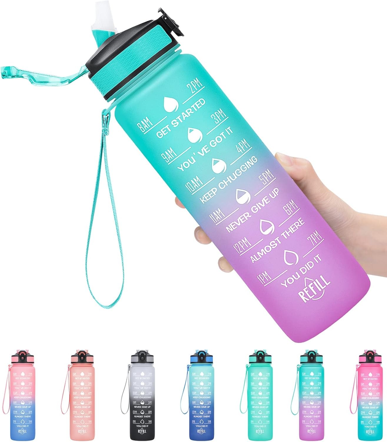 1000ml Motivational Water Bottle with Time Maker and Straw, BPA Free, Tritan Pl