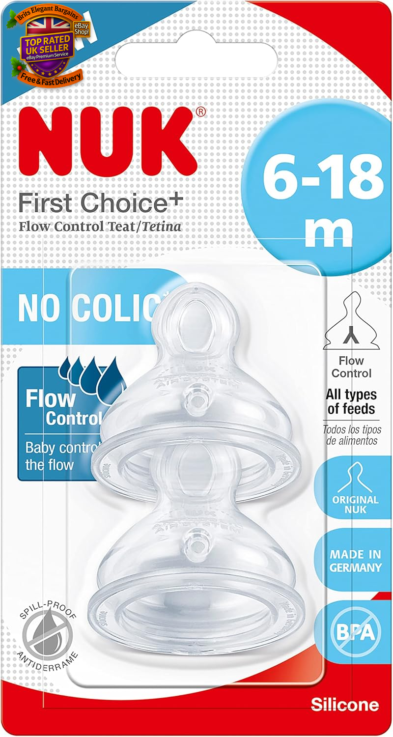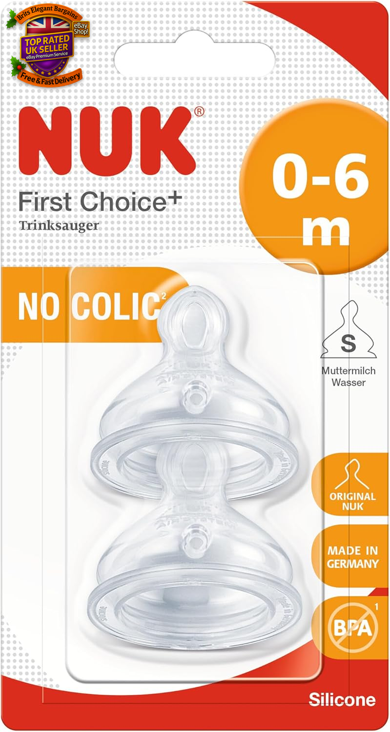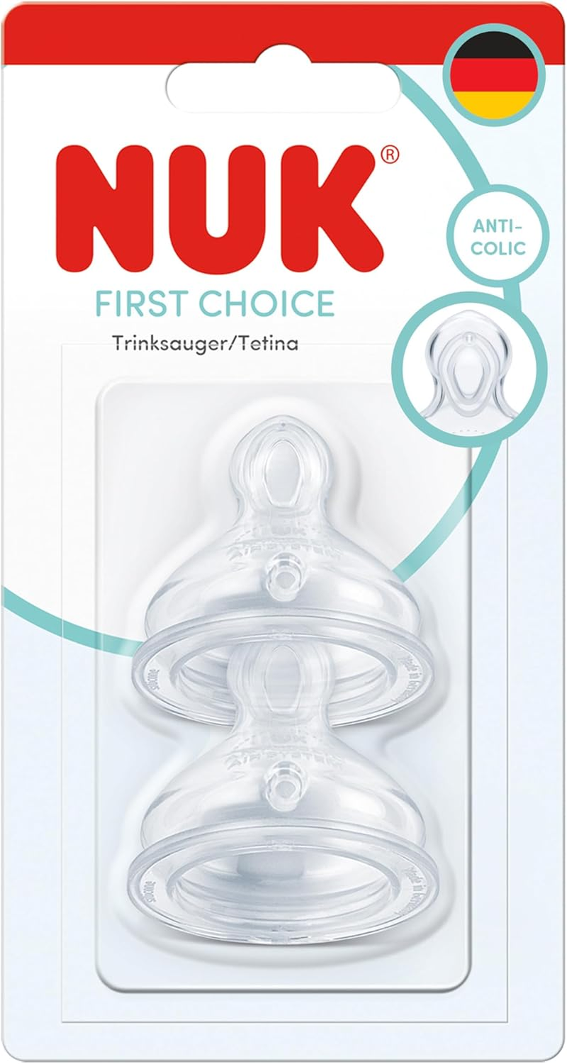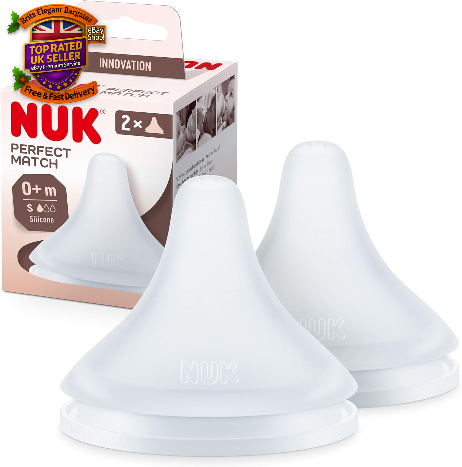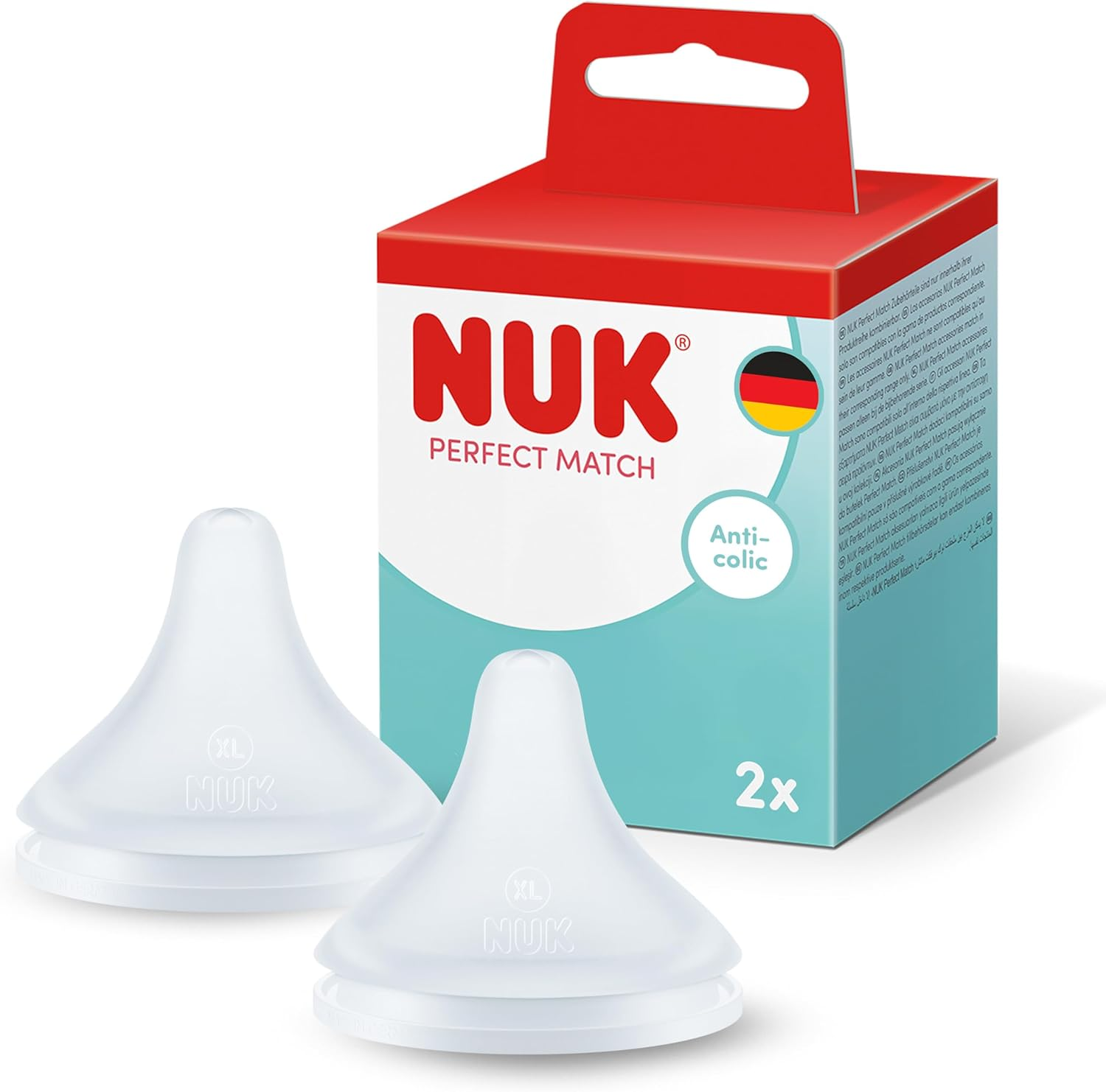 NUK Perfect Match Baby Bottle Teats | 0+ Months | Adapts to Baby's Palate | Anti Colic Vent | BPA-Free | Small Silicone Teat for Bottles | 2 Count