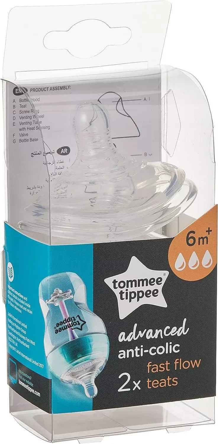 Tommee Tippee Advanced Anti-Colic Fast-Flow Baby Bottle Teats 2 Pack 6 Months+