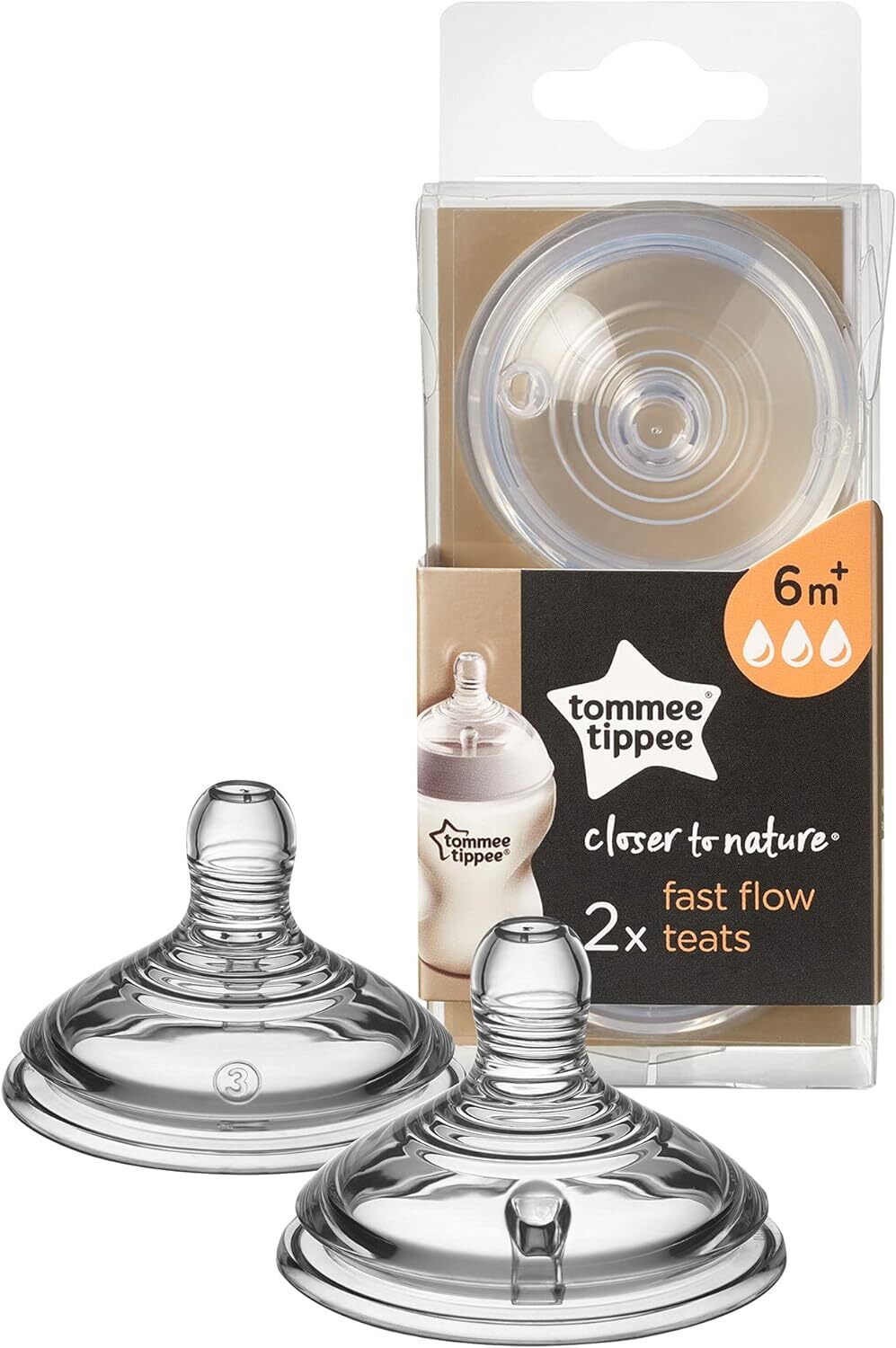 Tommee Tippee Natural Start Baby Bottle Teats, Fast Flow for 6m+, Pack of 2