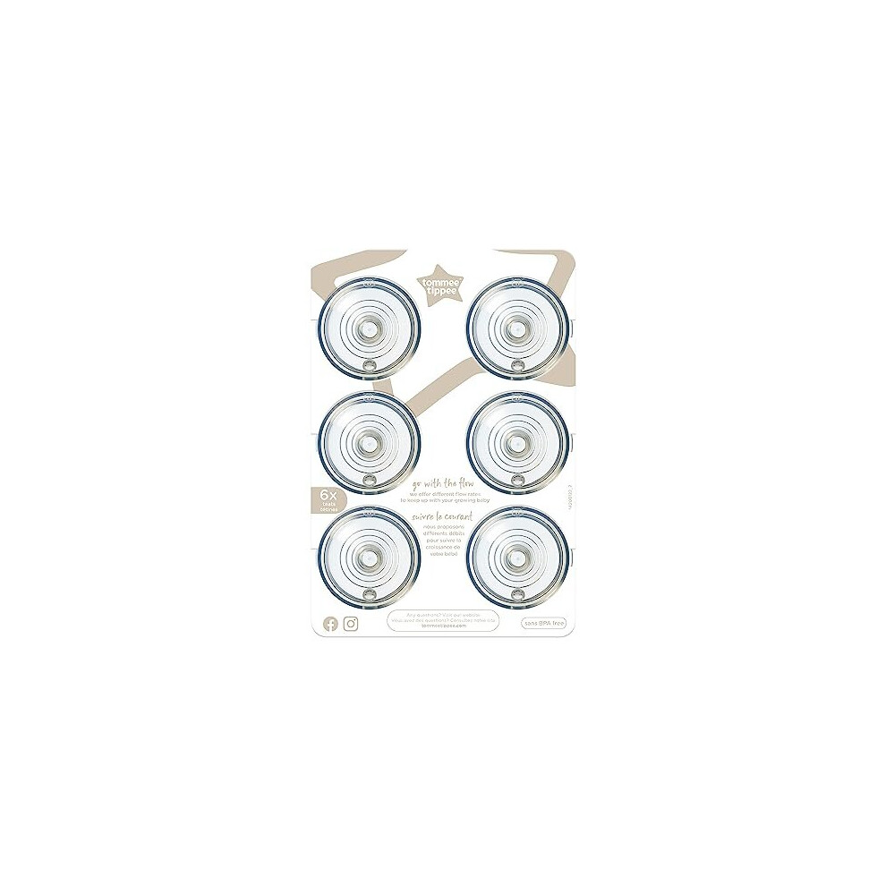Tommee Tippee Advanced Anti-Colic Baby Bottle Teats, Breast-Like, Soft Silicone, Fast Flow, 6m+, Pack of 6,Clear