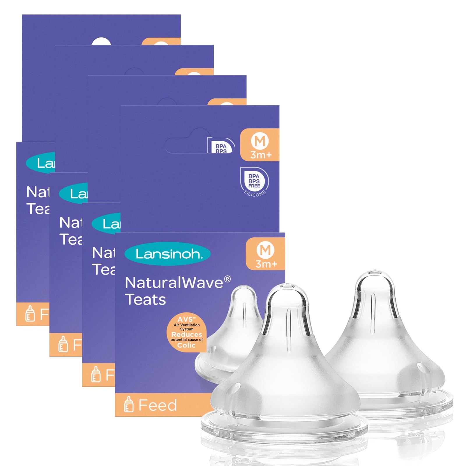 Lansinoh NaturalWave Baby Bottle Teats - Medium Flow - 8 Pack - Anti-Colic Air