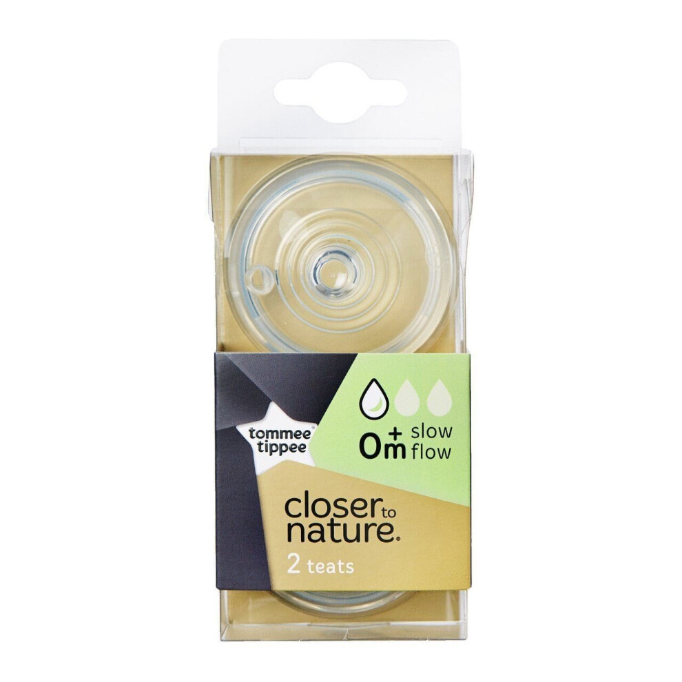 Tommee Tippee Closer to Nature Baby Bottle Teats, Breast-Like, Anti-Colic Valve, Soft Silicone, Slow Flow, 0m Plus, Pack of 2