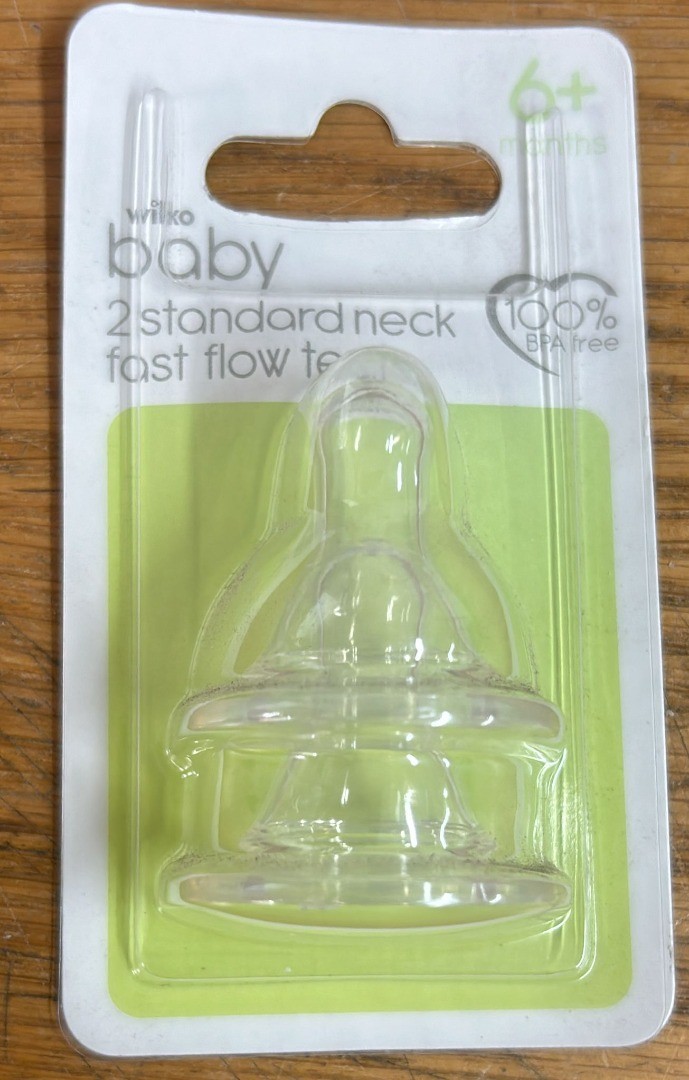 2 x Wilko Standard Neck Baby Bottle Fast Flow Teats (6 Months +) BPA Free
