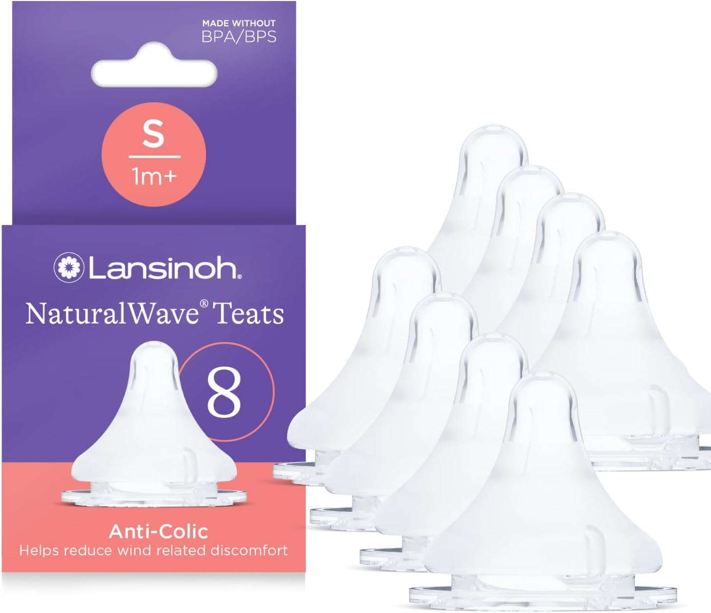 Lansinoh NaturalWave Baby Bottle Teats - Slow Flow - 8 Pack - Anti-Colic Air Vent - BPA & BPS-Free - Clinically Proven to Reduce Nipple Confusion - Compatible with Lansinoh Bottles