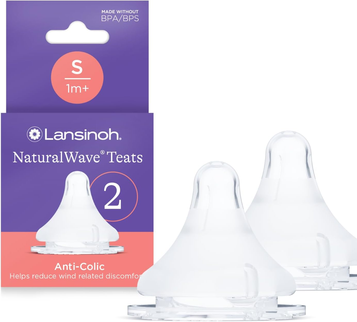 Lansinoh NaturalWave Baby Bottle Teats Slow Flow 2 Pack BPA Free Anti-Colic