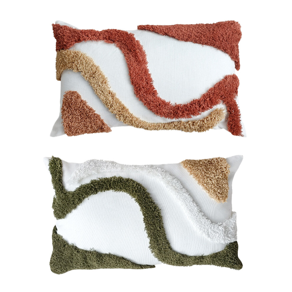 Cotton Tufted Woven Decorative Pillowcase, Vibrant Colors Textured Boucle for Couch Sofa Bed, 12X20 inch Set of 2, Machine Washable Farmhouse Style
