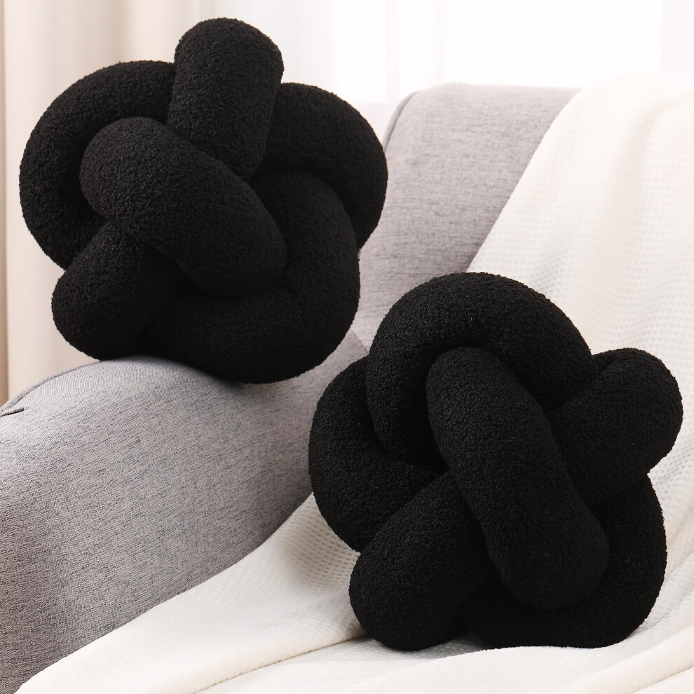 Set of 2 Black 12 Inch Knot Pillows with Soft Teddy Boucle for Sofa Bed and Home Decor