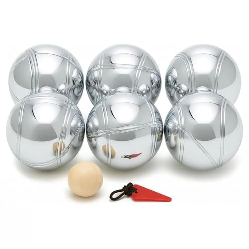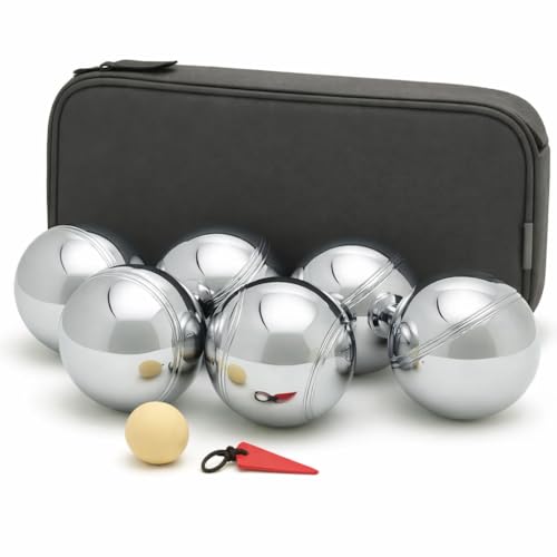 DUAS 6 Piece French Boules Set with Wooden Jack and Carry Case – Chrome Stainless Steel Petanque Game for Outdoor Garden, Beach and Camping Play (Set Of 6)