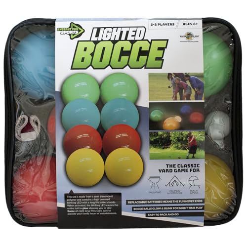 Water Sports Lighted Bocce Ball Set, Boules Outdoor Glow In The Dark Game for Camping, Parties and Beach Activities, Family Game Nights 2-8 Players, For Boys and Girls Ages 8 and Up