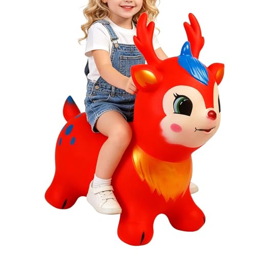 Bouncy Horse Hopper Toys - Girl Boy Inflatable Animal Bouncing Hopper Toy with Realistic Deer Shape, Big Round Eyes & Fast Inflation Builds Balance, Active Play - Ride on Rubber Bouncer for Kids