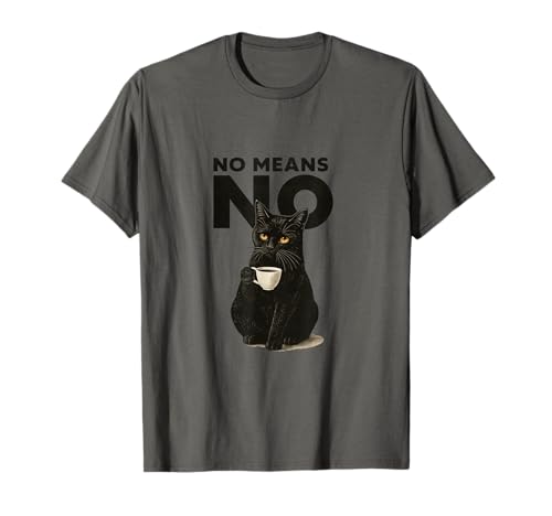 Means No Black Cat with Coffee – Boundaries Humor T-Shirt
