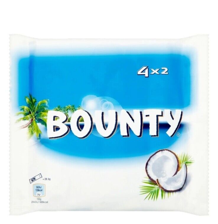 Bounty Coconut & Milk Chocolate Snack Bars Multipack 4 x 57G - UK STOCK