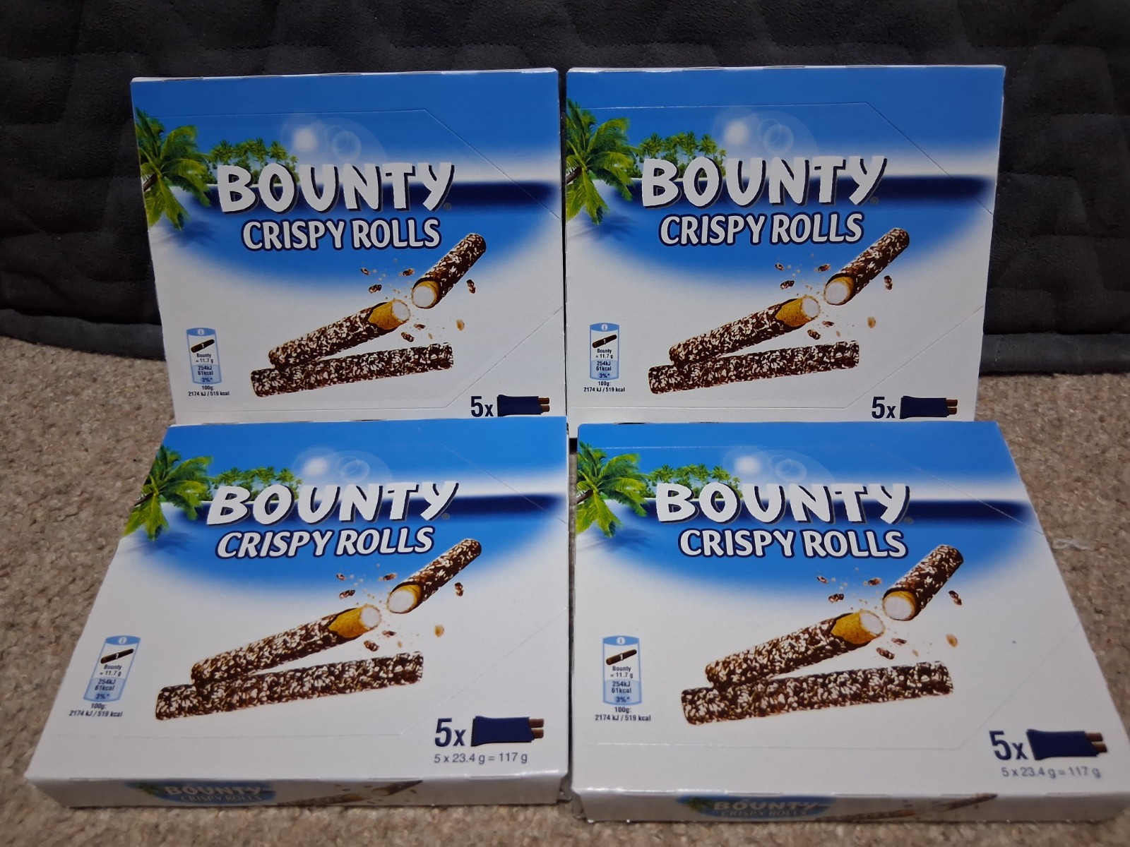 4x Bounty Milk Chocolate Coconut Crispy Rolls Bars (5 Packs) BBE 04/05/2026 NEW
