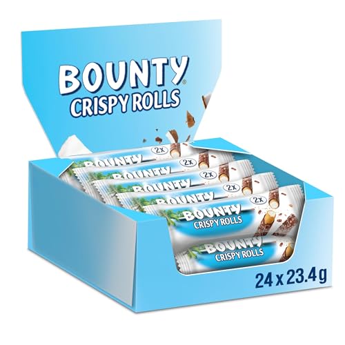 Bounty Crispy Rolls, Milk Chocolate, Coconut, Biscuit Snack bar, Single Pack 23.4 g (1 x 24 Bars)