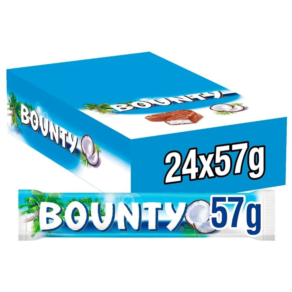 Bounty Milk Chocolate Bars 24 x 57g – Full Box – Coconut Snack Treats