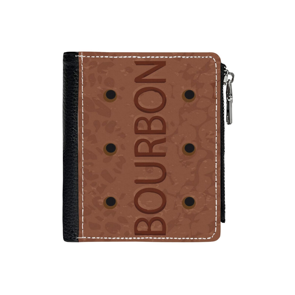 (Bourbon Biscuit_45) PU Wallet Compact Bifold with Zipper & Multiple Card Coins Slots Black Stylish Durable Graphic Design Print for Men Women Kids Ch