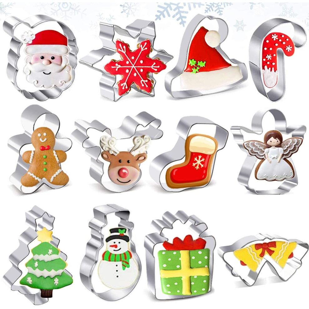 Christmas Cookie Cutter Shapes Set, 12 Pcs No-Repeat Christmas Cookie Cutters Gingerbread Man Cutters, Stainless Steel Bourbon Biscuit Cutter