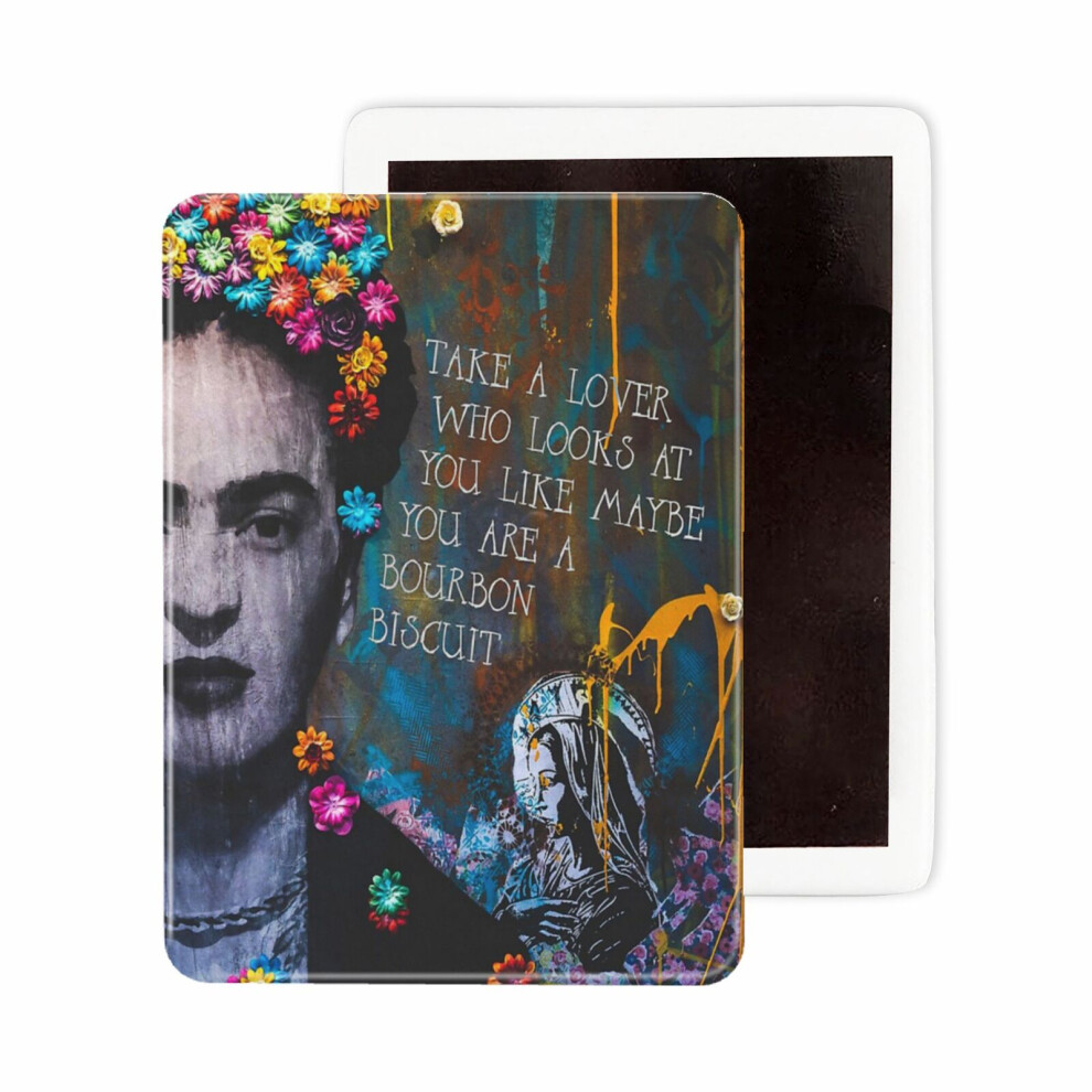 (Frida Kahlo - Bourbon Biscuit_7023) Fridge Magnets Ceramic Refrigerator Magnet Handmade Graphic Artwork Kitchen Decorative Accessories / 2.4 x 3.2inc