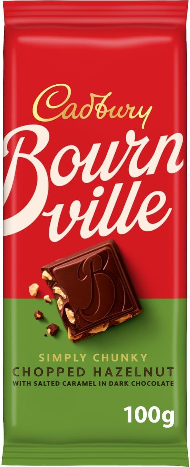 Bournville Simply Chunky Chopped Hazelnut with Salted Caramel Chocolate Bar, 100