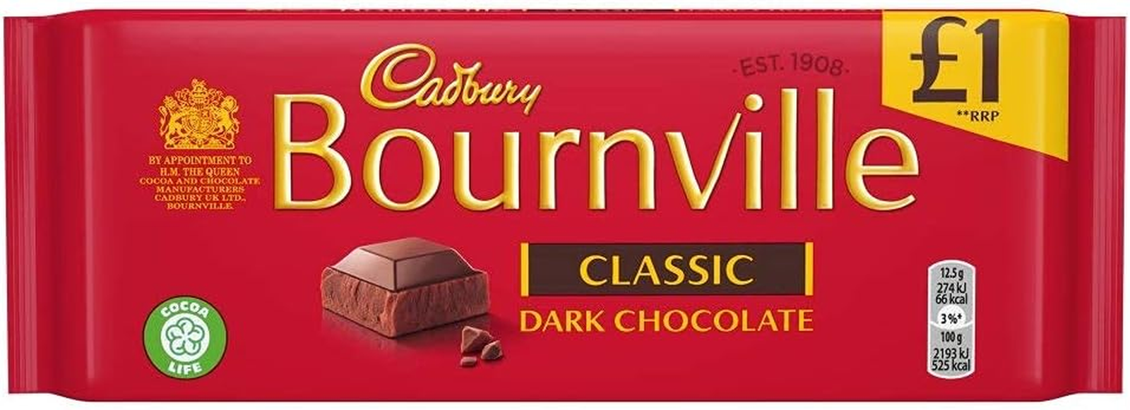 Cadbury Bournville Classic Dark Chocolate Bar, 180g | UK Free And Fast Dispatch