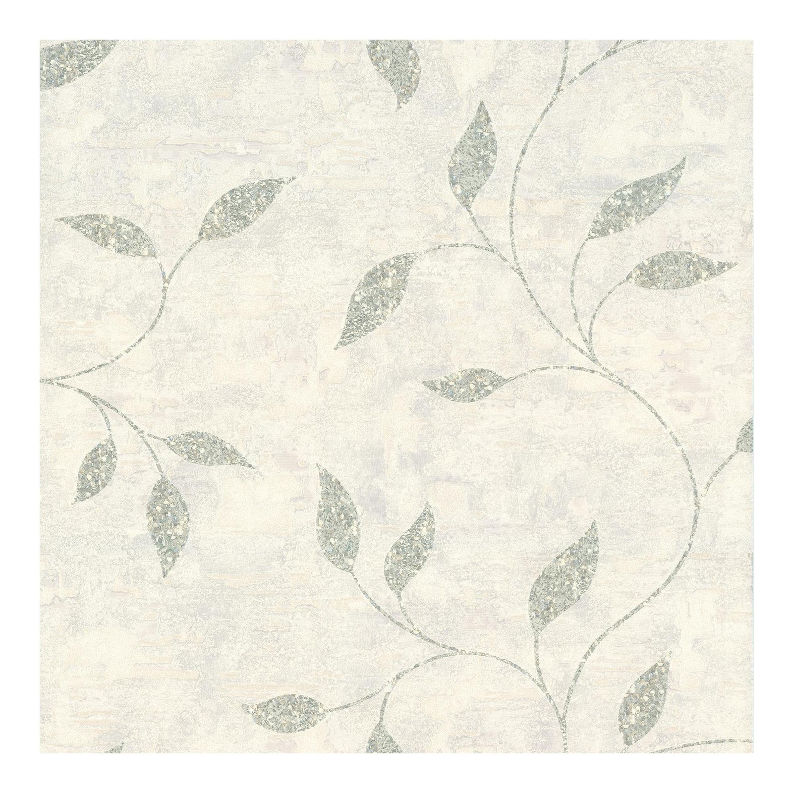 Boutique Ornamental Leaf Silver Textured Floral Wallpaper