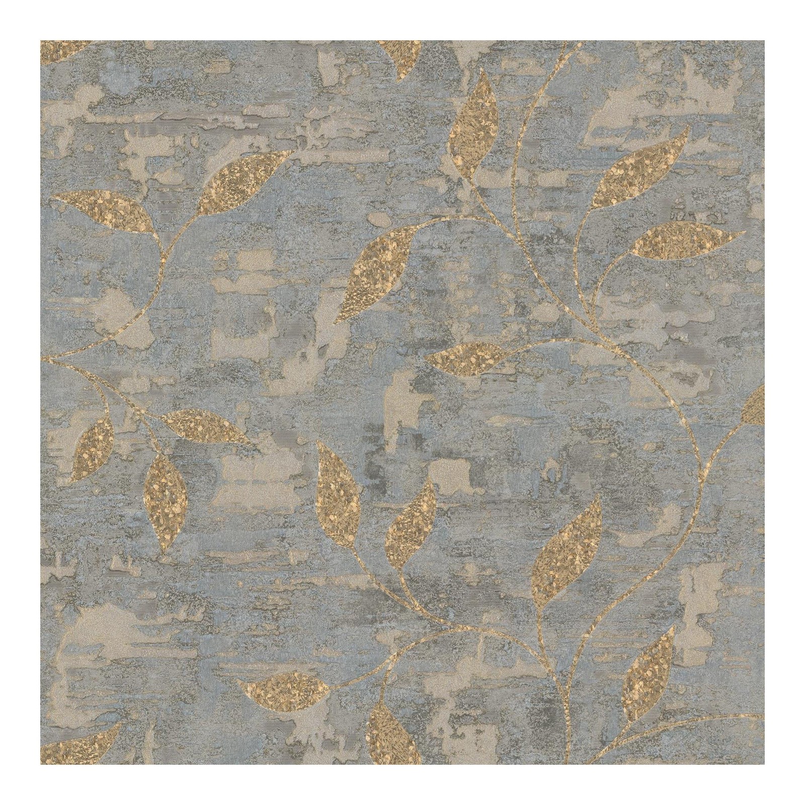 Boutique Ornamental Leaf Steel / Gold Wallpaper