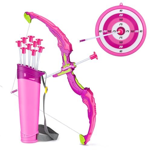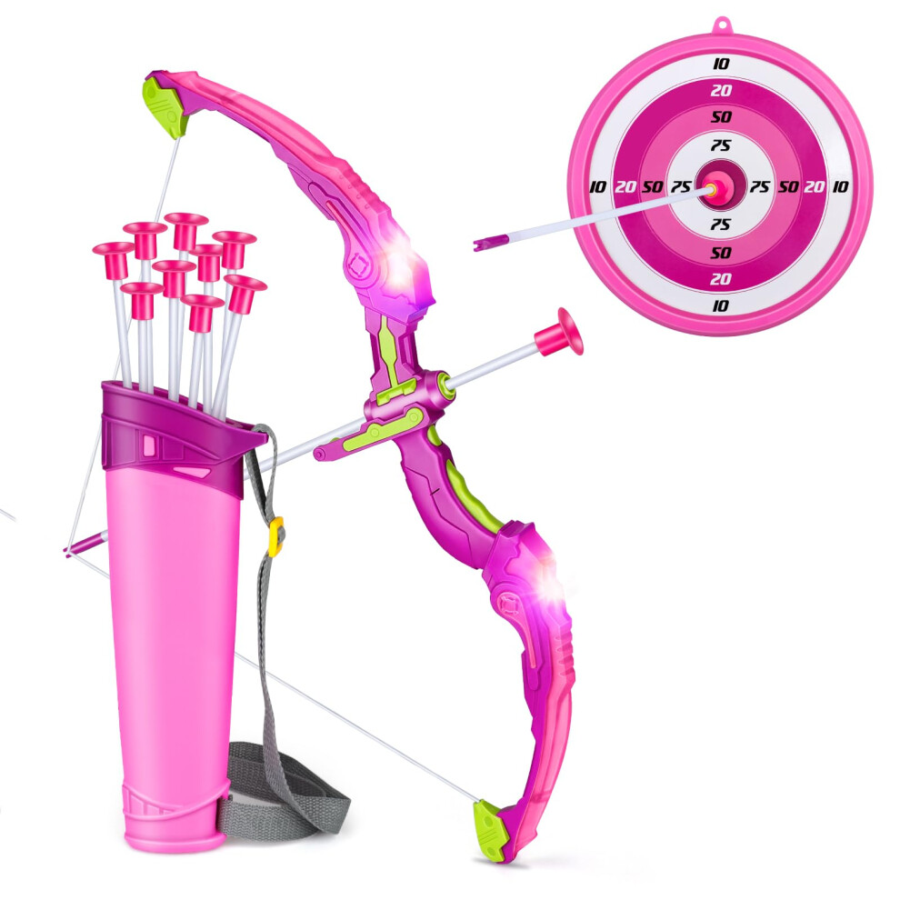 Own1one Bow and Arrow Set for Kids, 2 in 1 LED Light Up Archery Set Includes 1 Bow, 10 Suction Cup Arrows & 1 Quivers, Indoor Outdoor Toys Gifts for Girls Ages 4 5 6 7 8 Years Old (Pink)
