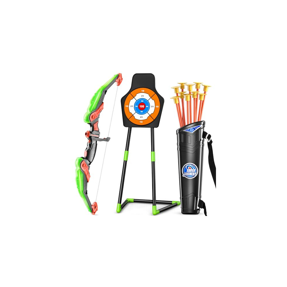 HYES Bow and Arrow for Kids, LED Light Up Archery Set with 12 Suction Cup Arrows, 1 Standing Target, 3 Score Targets & 1 Quiver, Indoor Outdoor Sport Gifts for Boys Girls Ages 4-12, Green