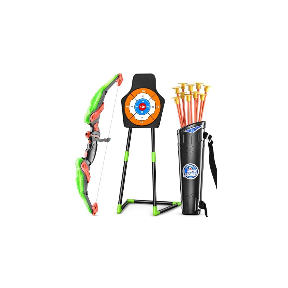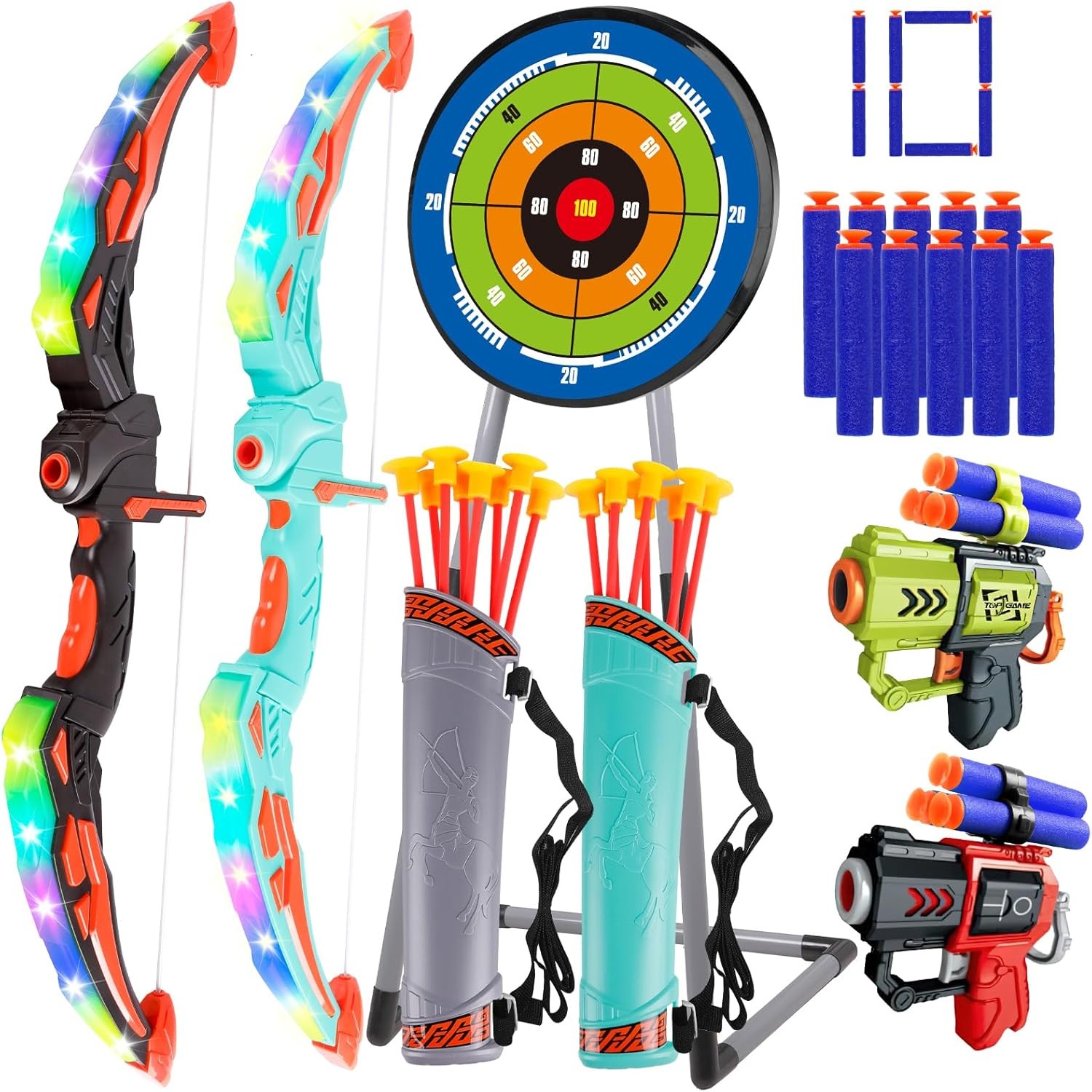 Bow and Arrow Set for Kids Archery Set with LED Lights Includes 10 Suction Cup Arrows, Quivers & Standing Target for 3-12 Years Old Boys & Girls