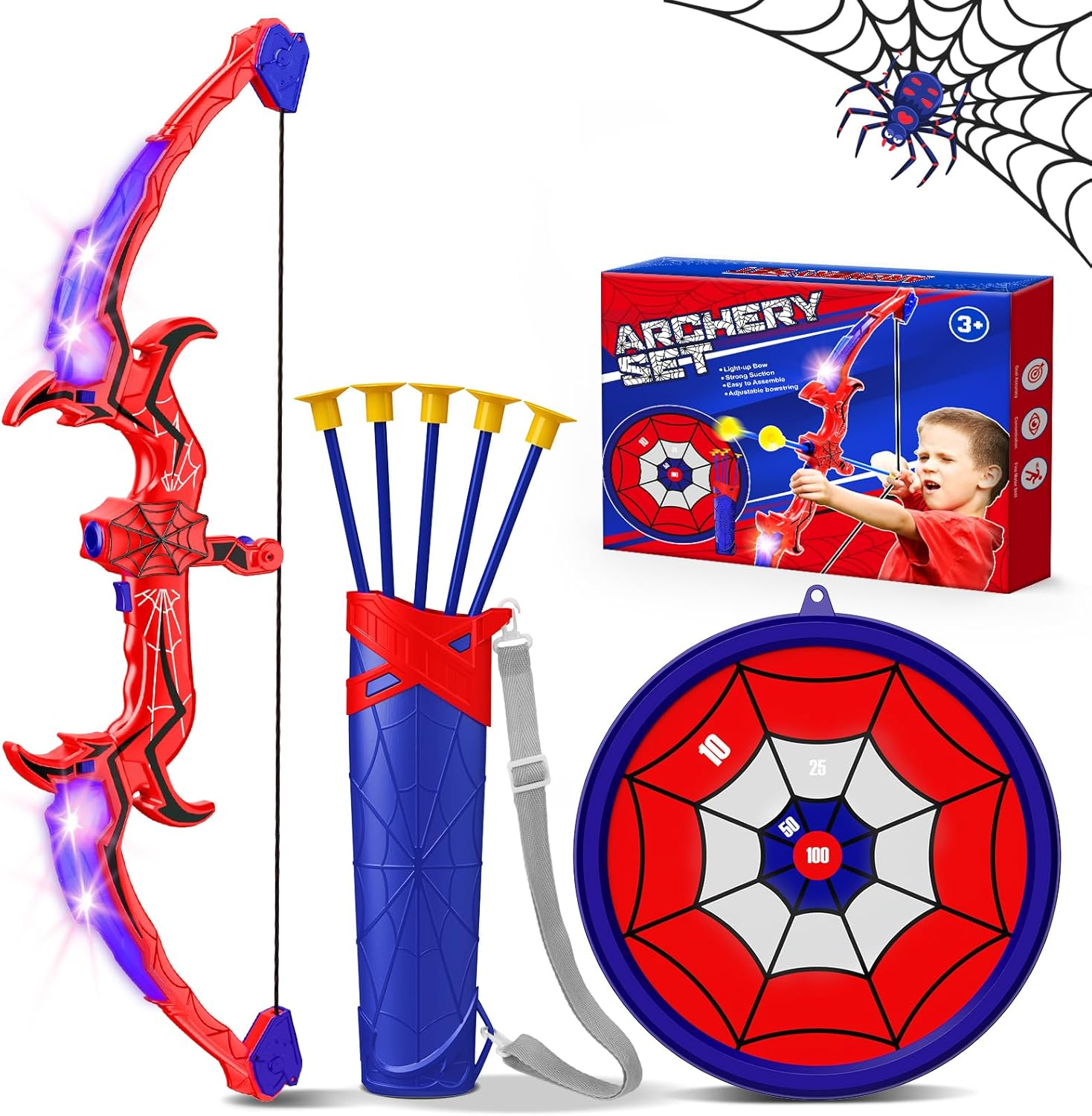 Toyokid Spider Bow and Arrow Set Kids with Flashing LED Lights for Kids Outdoor