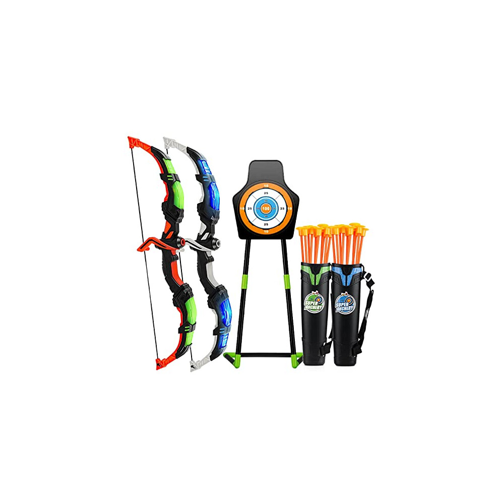 VALYPANOR 2 Pack Bow and Arrow Set for Kids LED Lights Archery Toy Set -Includes 2 Bows 20 Suction Cup Arrows & 2 Quivers & 1 Standing Target Outdoor Toys for Kids Boys & Girls Ages 3-12 Years Old