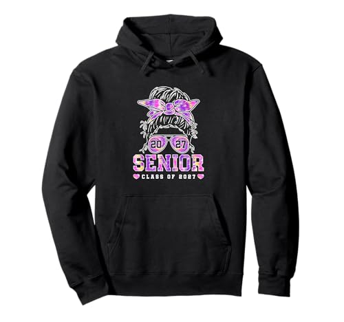 Class of 2027 Senior Coquette Bow Messy Hair 26 Graduation Pullover Hoodie