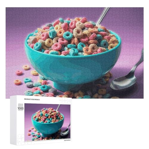 1000 PCS Jigsaw Puzzles Cereal in Bowl Wooden Puzzle Personalized Picture Puzzle Family Decoration Puzzles for Adults Challenging Puzzle Family Wedding Graduation Present