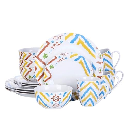 LLSHQ Kitchen Plates 16 Piece Stoneware Dinnerware Set with Dinner Dessert Plate Cereal Pasta Bowl